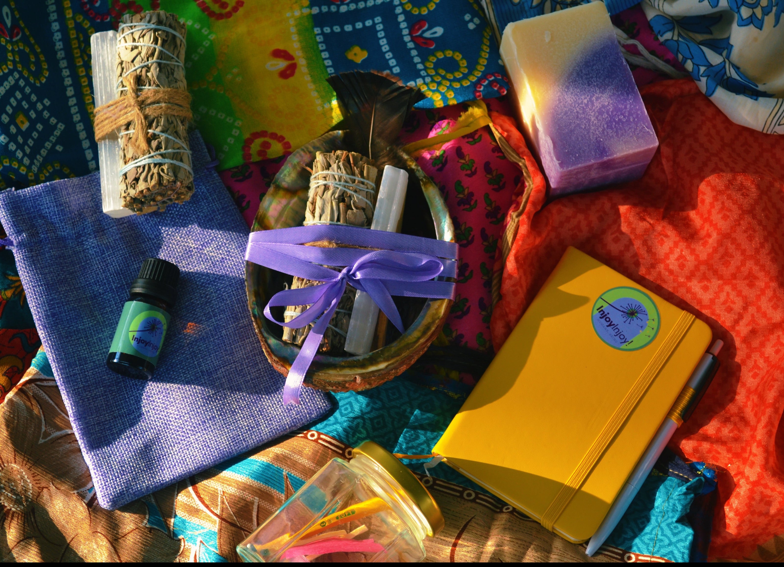 We lovingly and elegantly curate experiential gift boxes and alchemy kits that bring joy, connection, and ritual to your events. Alchemize your gatherings with exclusive InjoyInjoy! audio meditations and blessings.